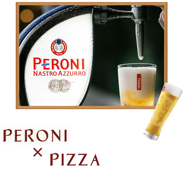 ペローニの特徴は、苦み・香り・キレの絶妙なバランス。最初の一口目には、柑橘類のフレッシュな香りが広がり、後にほどよい苦みが感じられます。また、後味はすっきりしており、当店自慢のピッツァとの相性が良い生ビールです。